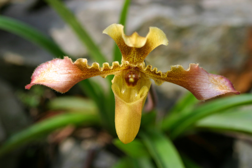 L’orchidea Paphiopedilum è una magnifica pianta appartenente alla famiglia delle Orchidacee ed originaria del continente asiatico. Si tratta di una pianta caratterizzata da foglie coriacee di colore verde più o meno scuro o screziate e da fusti lunghi fino a 60 centimetri che crescono tra il fogliame. I fiori sono molto particori, con il labello che ricorda vagamente una borsa ed i petali a margine seghettato. La fioritura compare in epoche diverse, a seconda della specie e del luogo di coltivazione.